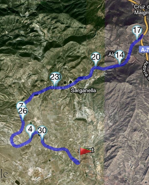 Después de comer, y una pequeña siesta, ya estamos aquí para actualizar. La ruta de hoy a sido mas o menos la que puse, hemos quedado Edu y yo a las 9 en mi casa, y hemos ido en coche hasta Agost, allí cogimos la vía verde dirección Maigmó.